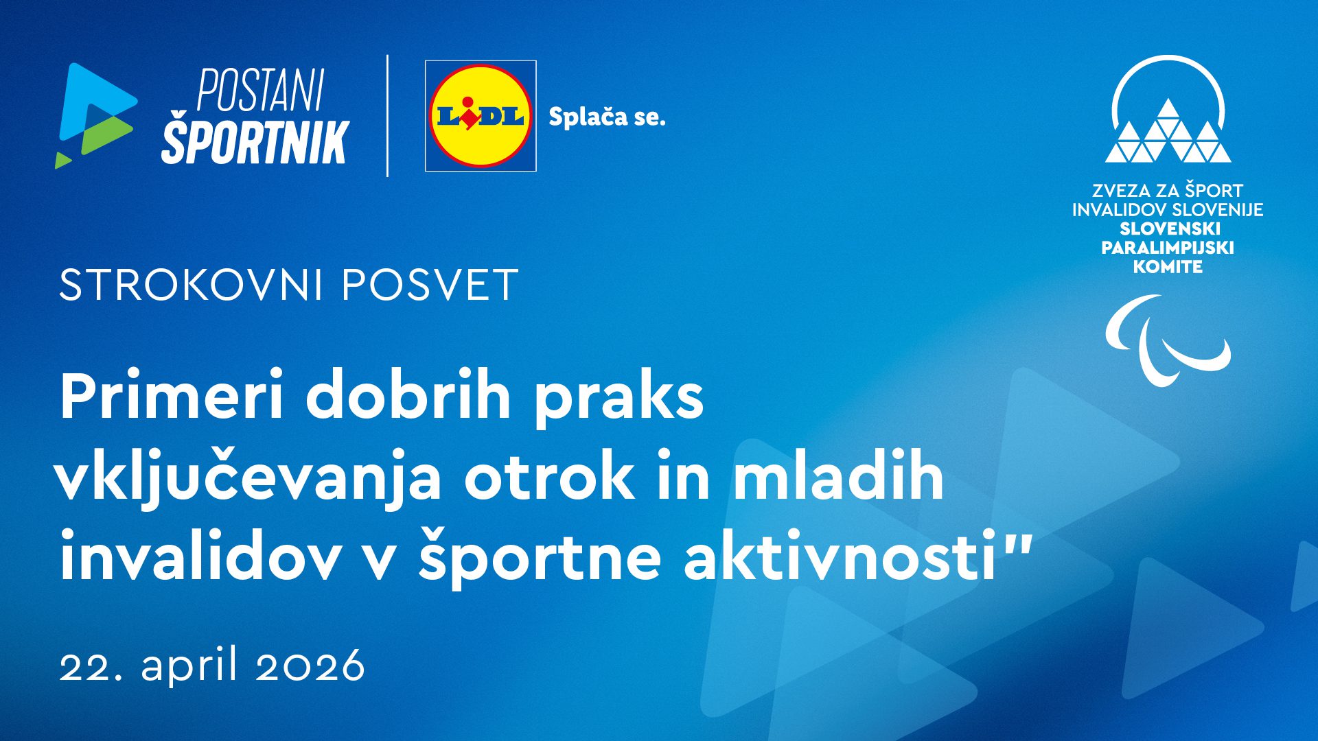 Na Zvezi za šport invalidov Slovenije – Slovenskem paralimpijskem komiteju v sodelovanju z našim dolgoletnim partnerjem in zlatim pokroviteljem Lidlom Slovenija že več let organiziramo strokovne posvete v okviru programa "Postani športnik". Z njimi si prizadevamo vzpostaviti dolgoročni sistem [...]