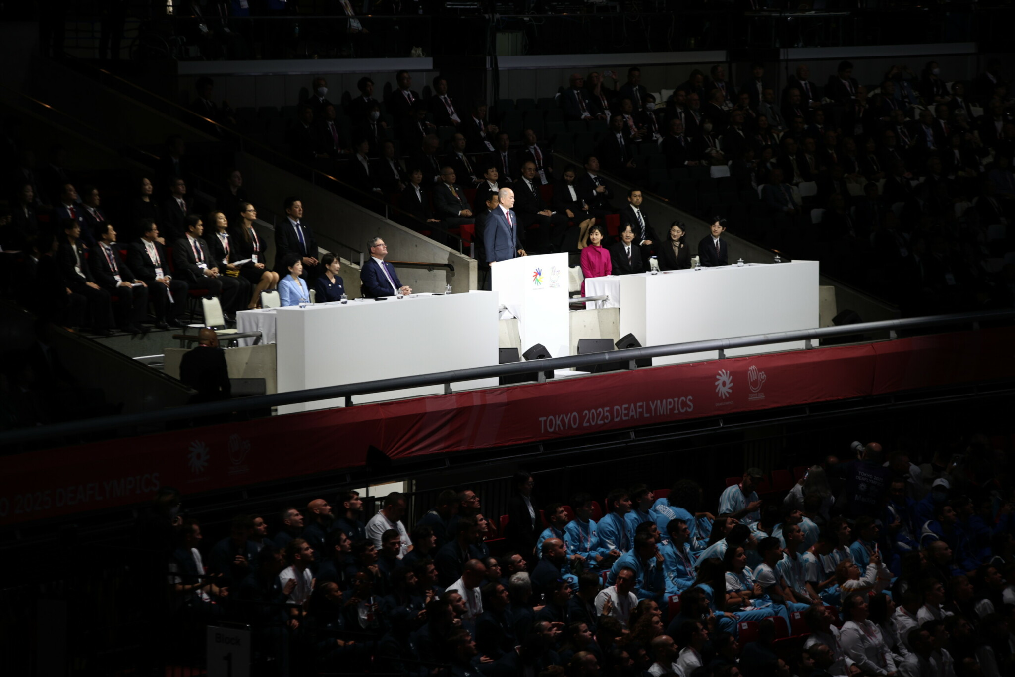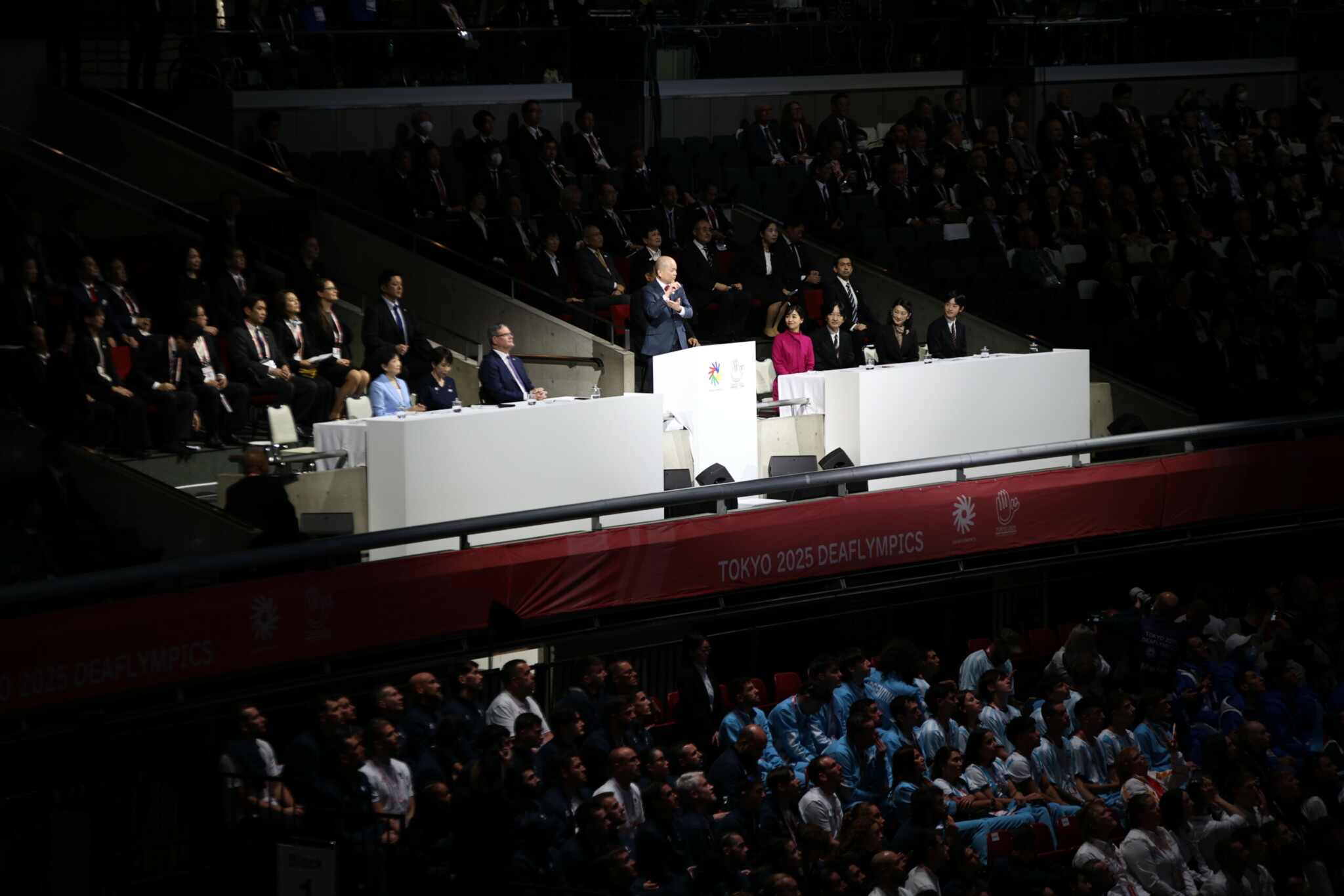 Slovesnosti se je udeležil japonski kronski princ Fumihito, mlajši brat cesarja Naruhita, skupaj s soprogo Kiko ter njunima otrokoma, princeso Kako in princem Hisahitom. V govoru je izrazil upanje, da bodo tokijske igre ustvarile dragocene spomine za številne ljudi ter okrepile zanimanje za šport gluhih. Med visokimi gosti sta bili tudi japonska predsednica vlade Sanae Takaichi in tokijska guvernerka Yuriko Koike. Igre je uradno odprl predsednik Mednarodnega komiteja za šport gluhih Adam Kosa.