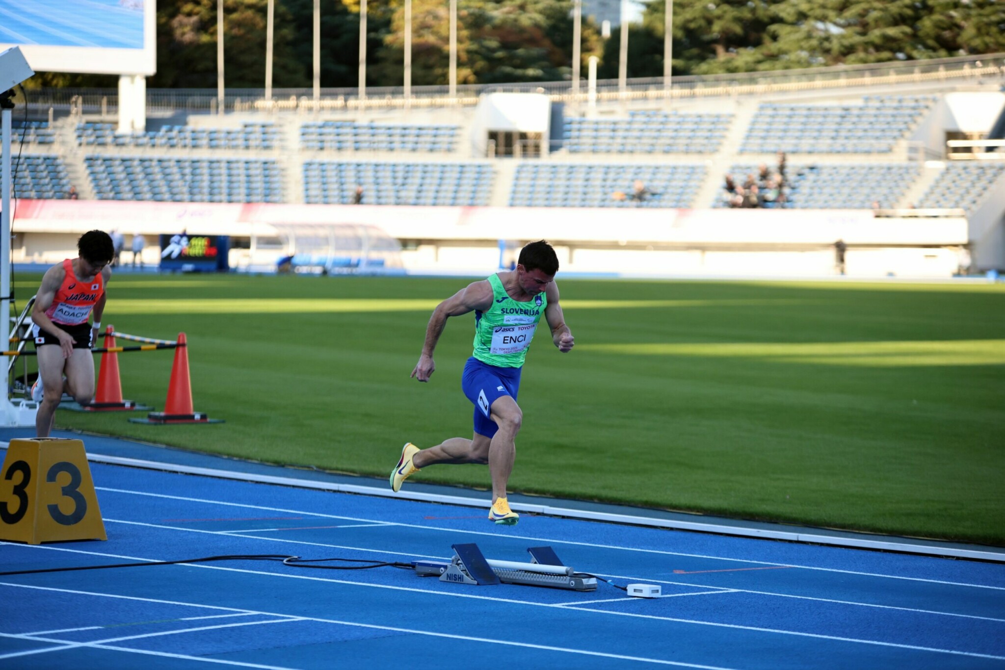 Tadej Enci je bil v finalnem teku na 400 metrov v izjemno močni konkurenci; po oceni poznavalcev take v zgodovini olimpijade gluhih v tej disciplini še ni bilo. S časom 49,61 sekunde je zasedel šesto mesto.