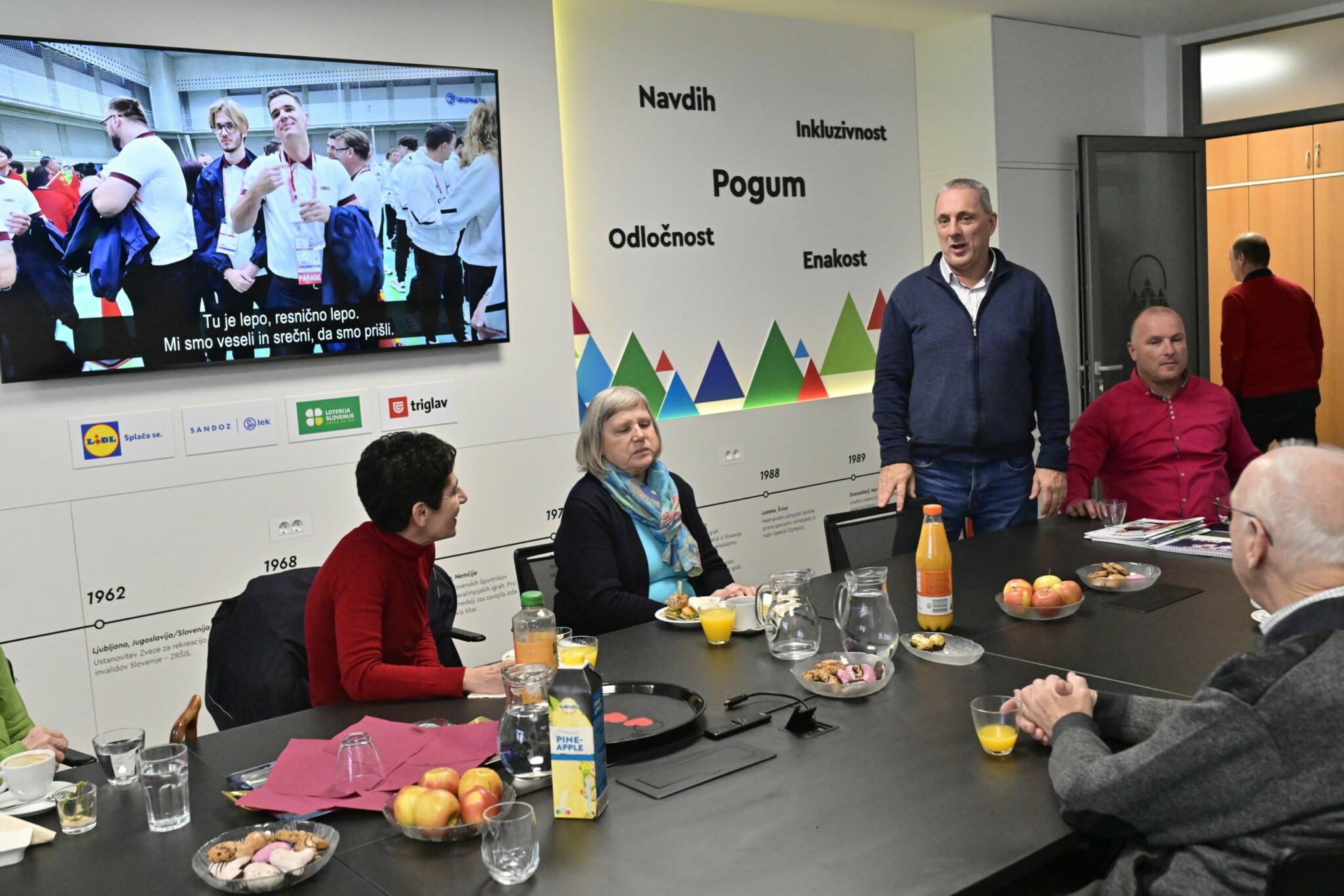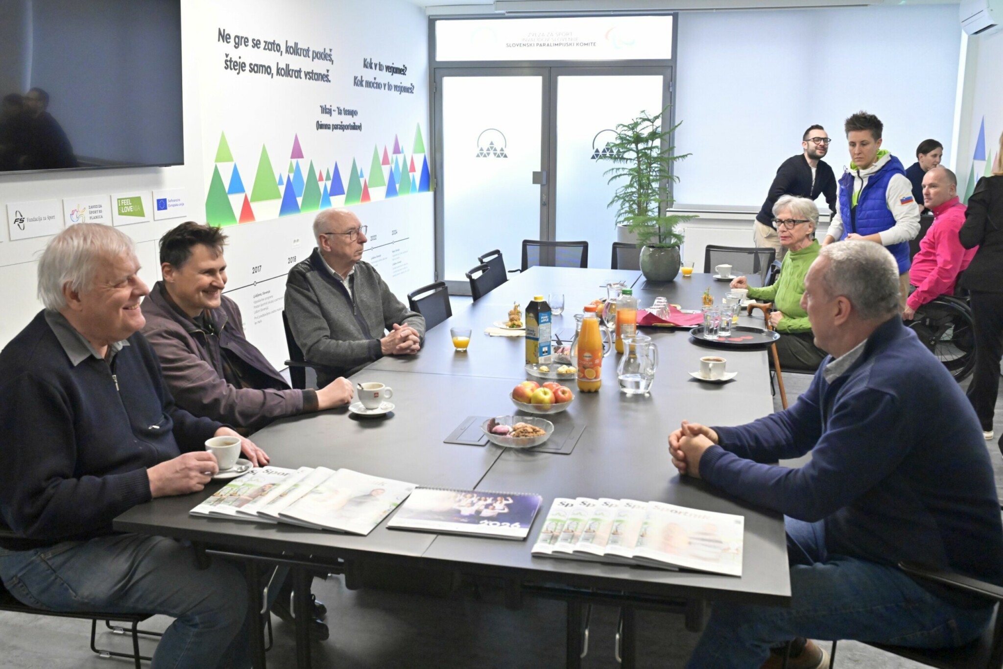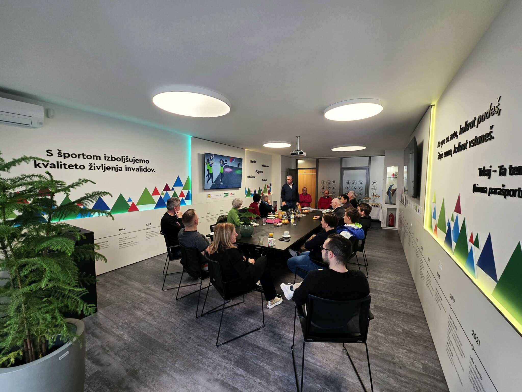 “Parašportni center je nova pomembna pridobitev, gre za moderno in napredno sejno sobo. Namenjena je vsem. Prilagojena je vsem oblikam invalidnosti, tako gibalno kot senzorno oviranim kot gluhim. Vzpostavljena je tudi indukcijska zanka. Prostor je dostopen, saj se nahaja v pritličju. Želimo si, da bi naši parašportniki ta parašportni center vzeli za svojega, da bi se v njem družili in izvajali svoje aktivnosti. Na naši zvezi bo center namenjen sestankom, konferencam in posvetom, pripravili pa bomo tudi nabor vsebin, ki bi še dodatno pripomogle k promociji parašporta. Predvsem pa je pomembno, da ta parašportni center živi. V maniri dobrega gospodarja pa si bomo prizadevali, da bi del stroška pokrili tudi z oddajanjem prostora zunanjim uporabnikom,” je o novi pridobitvi povedal Damijan Lazar, predsednik Zveze ŠIS-SPK. Prav Damijan Lazar je minuli torek s sodelavci na prvem dogodku v prenovljenih prostorih gostil sponzorje zveze, za njimi pa so si prostor ogledali tudi nekdanji upokojeni zaposleni, ki so se udeležili že tradicionalnega srečanja po novem letu.