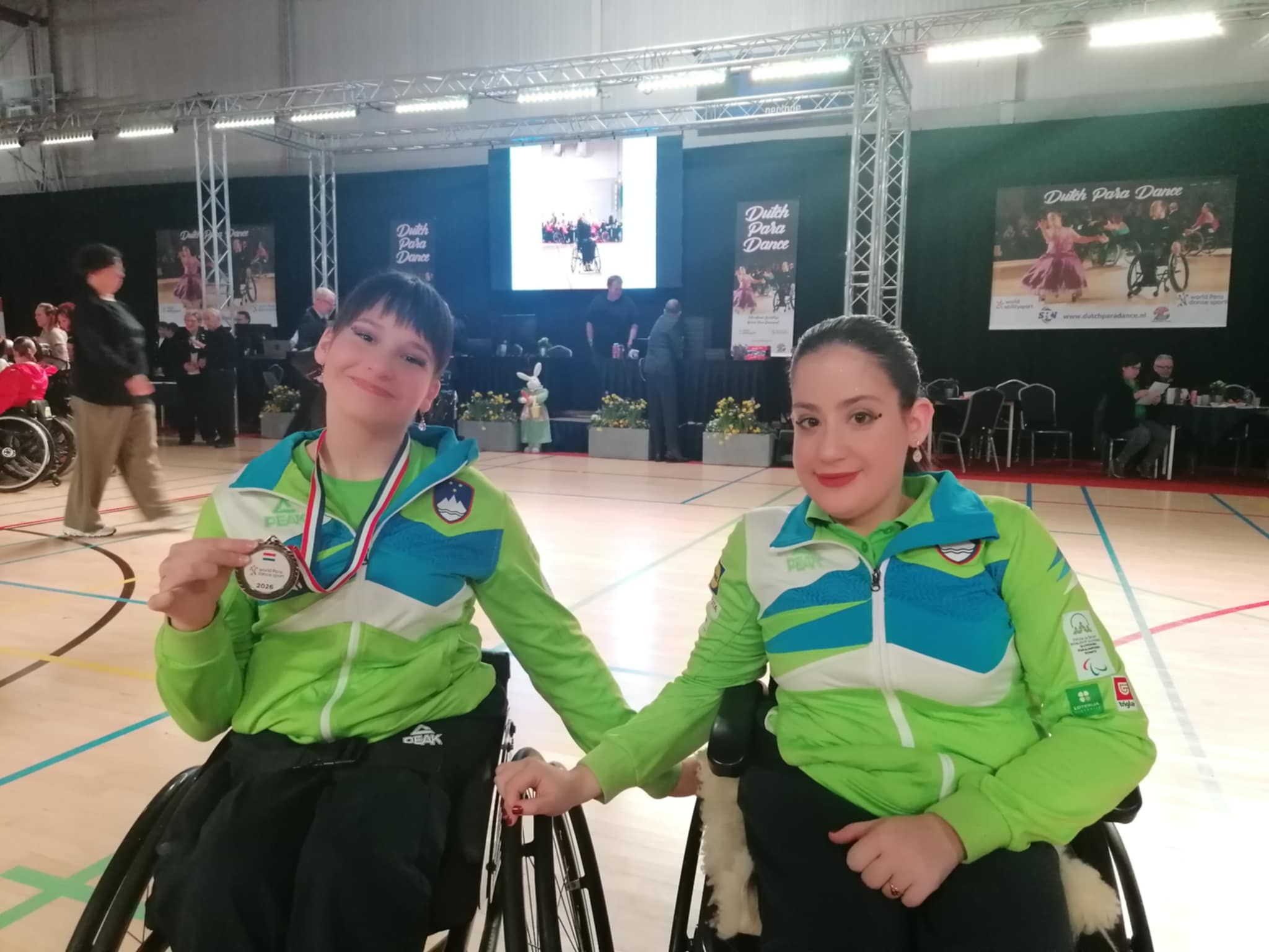 Slovenske paraplesalke so se na tekmovanju na Nizozemskem izkazale s čudovitimi nastopi in odličnimi rezultati. V soboto so v kategoriji DO Hfd Single Women class 2 Lara, Neža in Hana zasedle 3., 8. in 10. mesto med 15 tekmovalkami, v kategoriji DO Juniors pa sta Lara in Neža osvojili zlato in srebrno medaljo. Trener Andrej Novotny je poudaril, da so vse plesalke prikazale vrhunske nastope, pri čemer sta Lara in Neža navdušili kot največji presenečenji tekmovalnega vikenda.